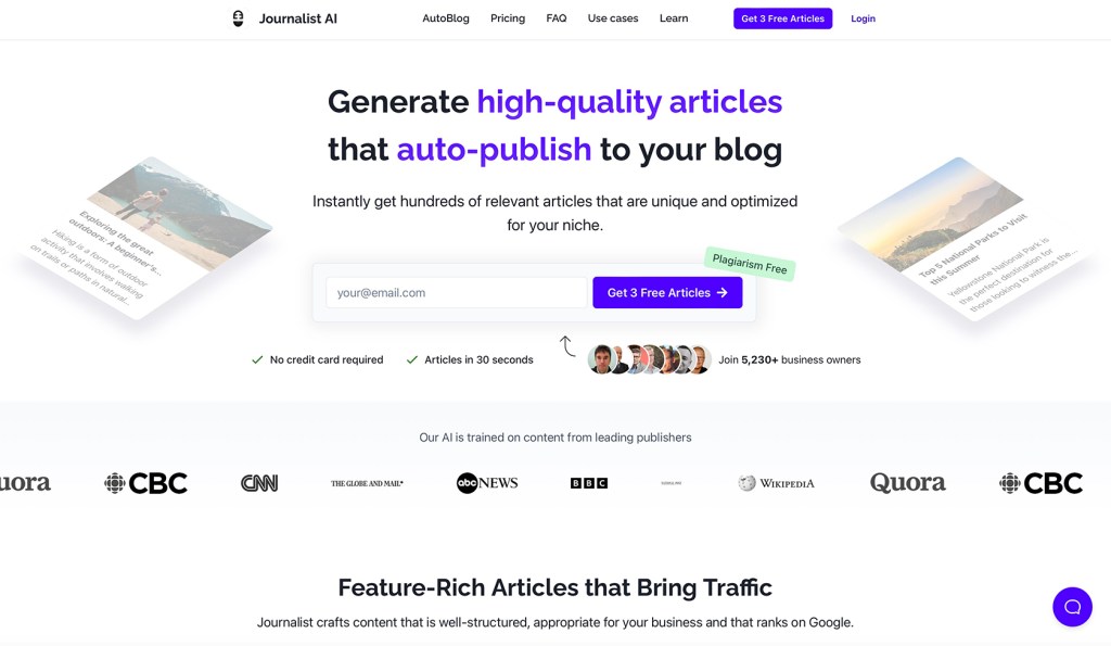 Generate high-quality articles that auto-publish to your blog. Instantly get hundreds of relevant articles that are unique and optimized for your niche.