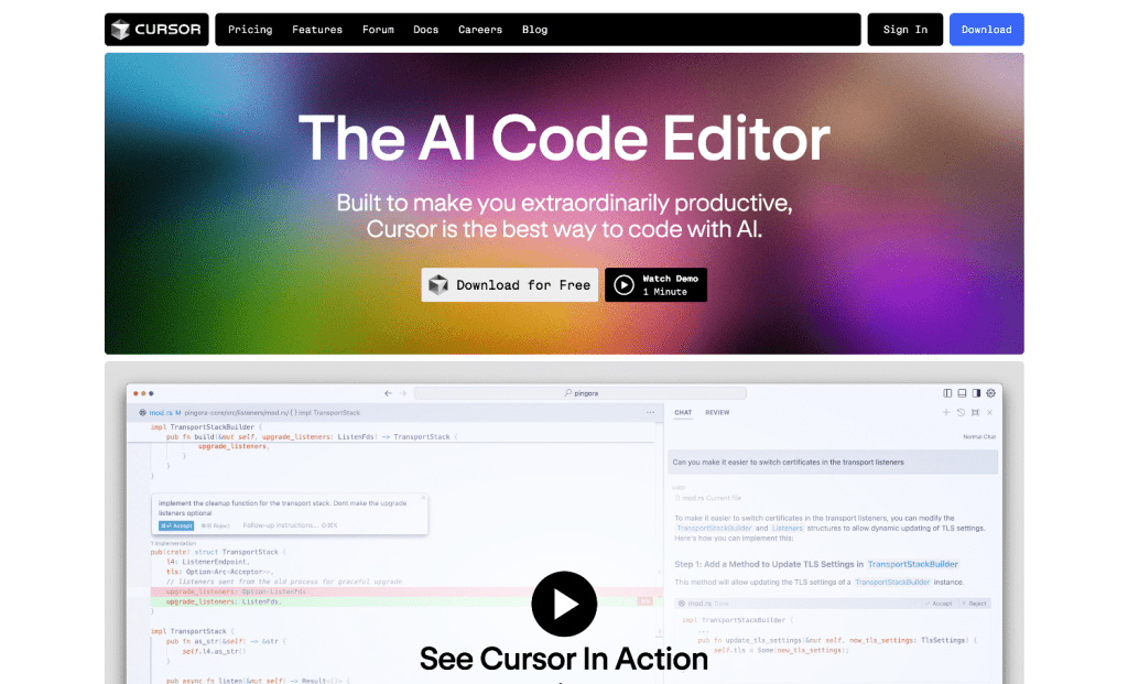 - Privacy and Security: Cursor prioritizes user privacy by not storing any source code on its servers and offering a privacy mode for sensitive projects. It also boasts SOC 2 certification, ensuring a secure environment for enterprise applications.