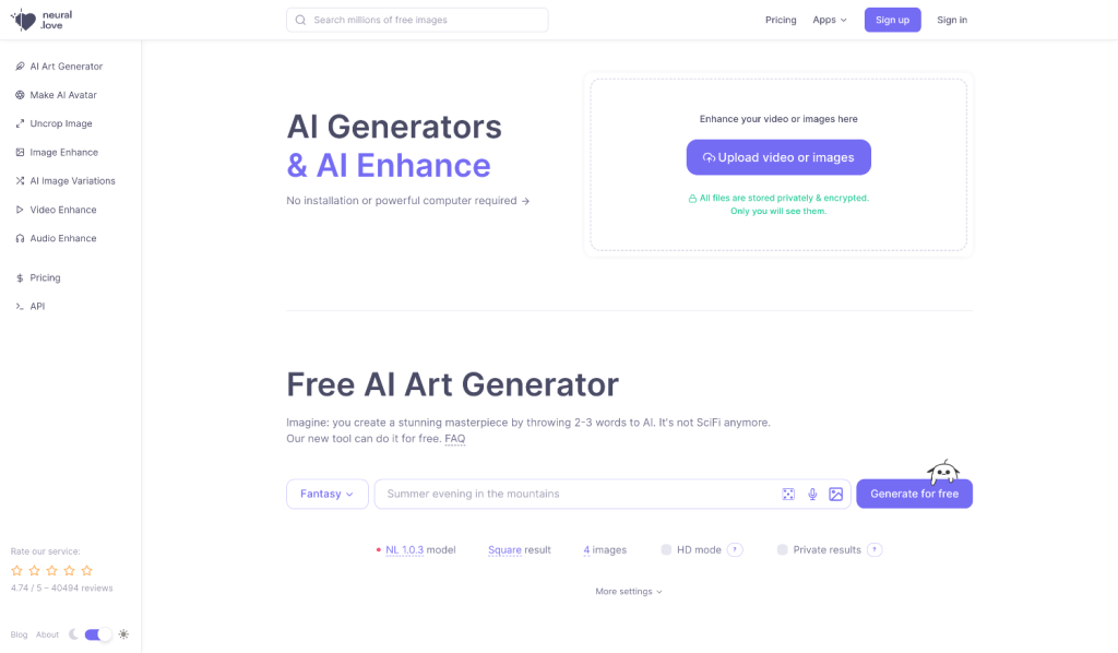 Neural.love is a versatile platform that offers a variety of AI tools for creating and enhancing images, videos, and audio.