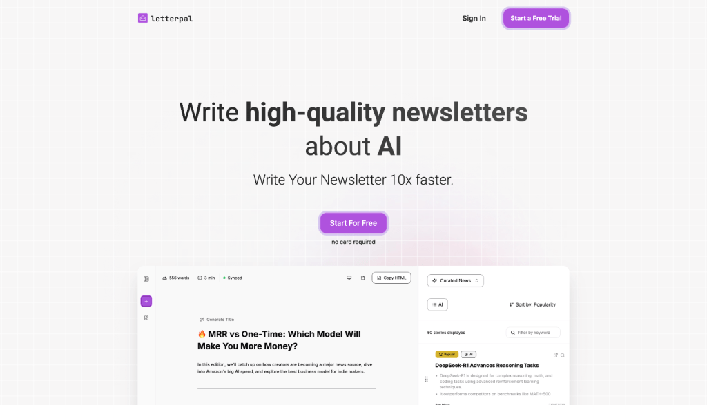 Letterpal simplifies newsletter creation with AI-powered content aggregation, customizable templates, and an intuitive editor. Its one-click draft generation and flexible pricing make it a valuable tool for content creators looking to streamline their workflow.