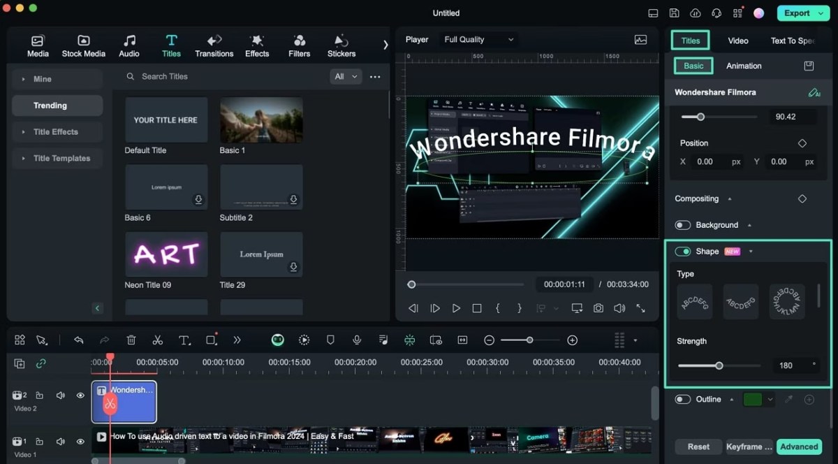 Another advantage that Filmora offers is the ease to bend and curve some text that is super easy and fast, good for new users. Filled with basic functions, users can quickly start working with curved text in their projects, which serves as an essential tool for editing and creating high-quality content.