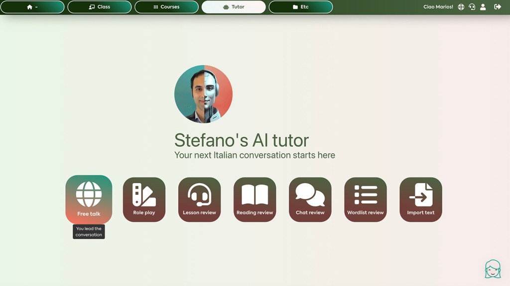 The AI tutor tab, has few options such as Free talk, role play, lesson review, reading review, chat review, worldlist review and import text.