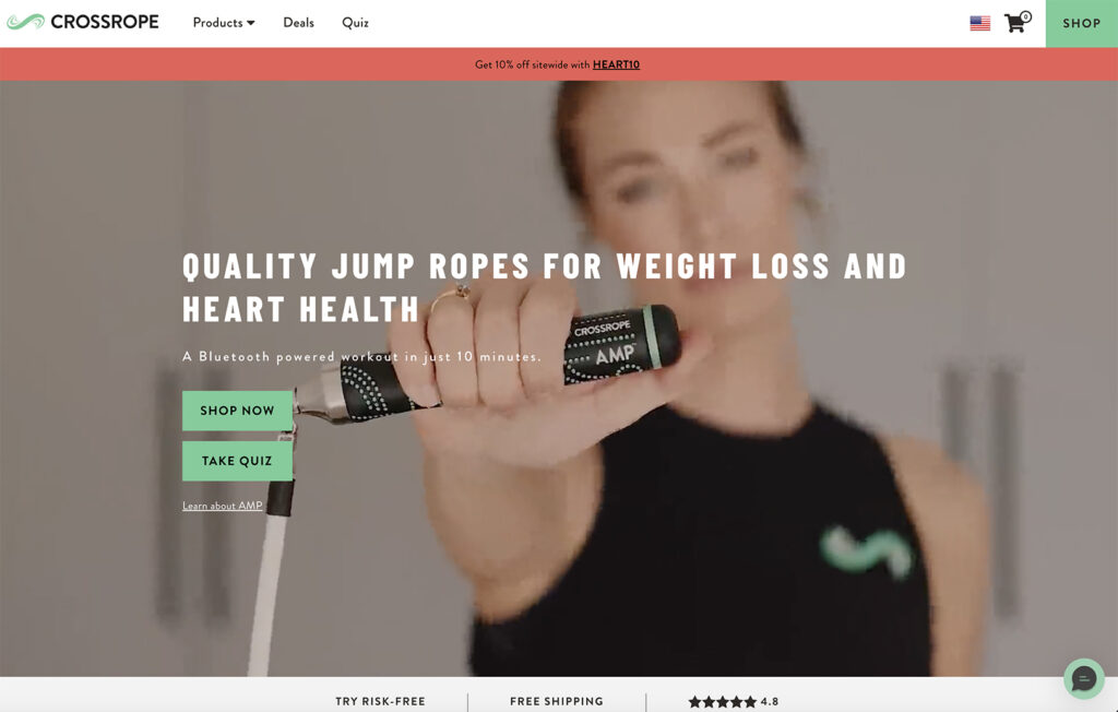 Crossrope high-quality jump ropes for weight loss and heart health. Very simple and professional website with a focus on single-product jump ropes. If you need an example of eCommerce website with a focus on one or two products and how to layout the website to its most potential then Crossrope is one of the best to take some inspiration from. Large images with a large shop button, easy checkout page with many checkout payment options such as Google Pay, PayPal, Amazon Pay, and ShopPay to help any client purchase their product.